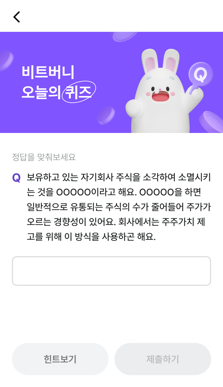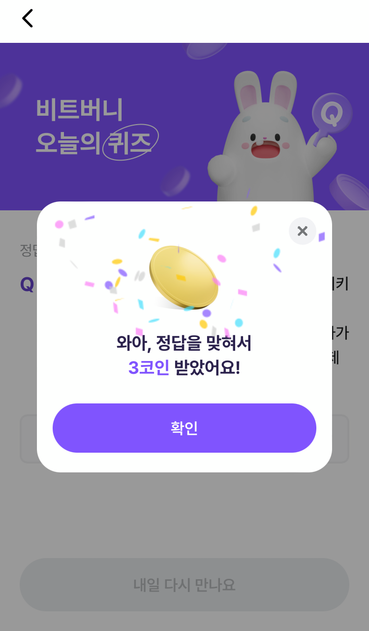 * 비트버니 퀴즈는 오늘의 퀴즈와 코인이 쌓이는 퀴즈가 있어요!!