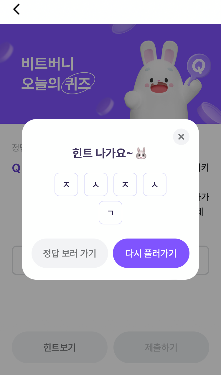 * 비트버니 퀴즈는 오늘의 퀴즈와 코인이 쌓이는 퀴즈가 있어요!!