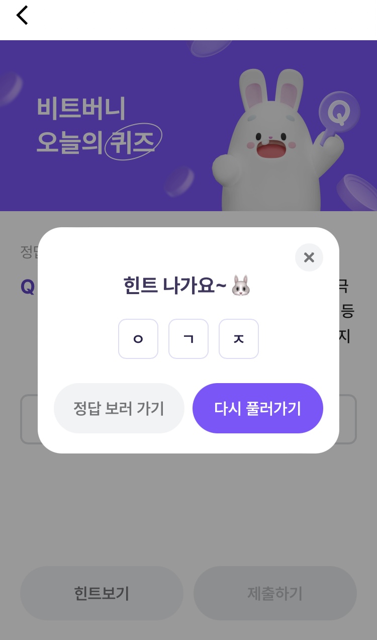 * 비트버니 퀴즈는 오늘의 퀴즈와 코인이 쌓이는 퀴즈가 있어요!!