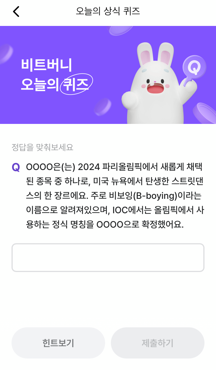 * 비트버니 퀴즈는 오늘의 퀴즈와 코인이 쌓이는 퀴즈가 있어요!!