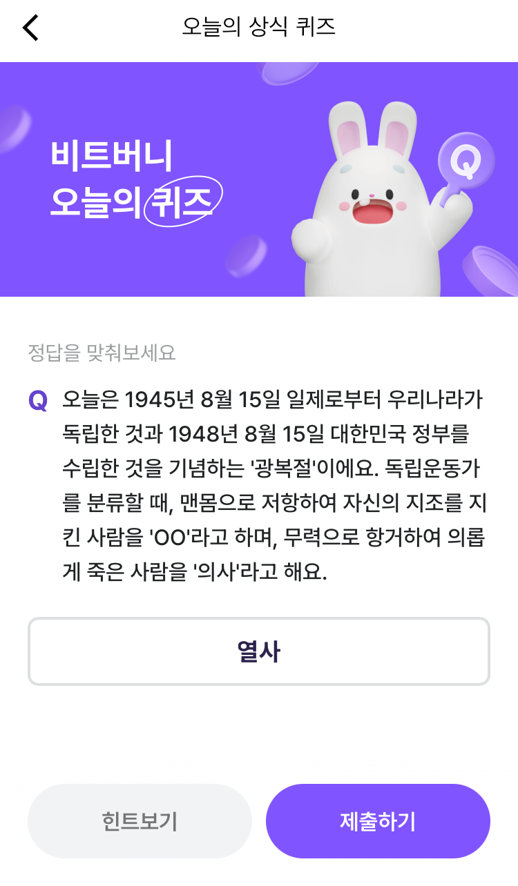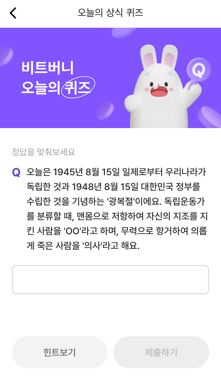 비트버니 8월 15일 오늘의 퀴즈 정답은?