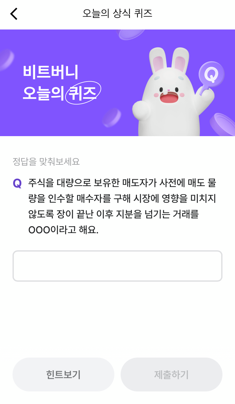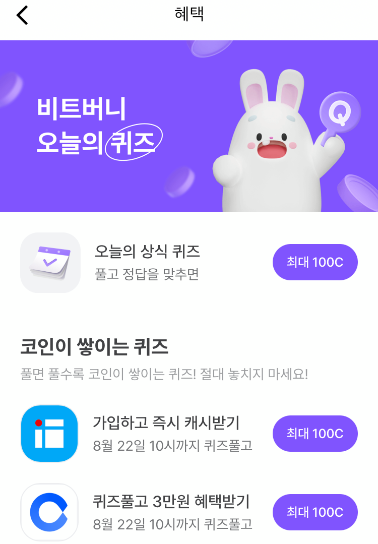 * 비트버니 퀴즈는 오늘의 퀴즈와 코인이 쌓이는 퀴즈가 있어요!!