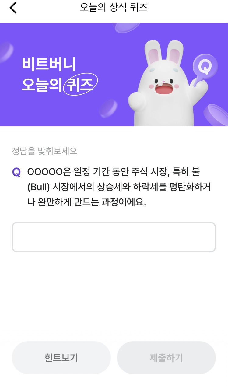 * 비트버니 퀴즈는 오늘의 퀴즈와 코인이 쌓이는 퀴즈가 있어요!!