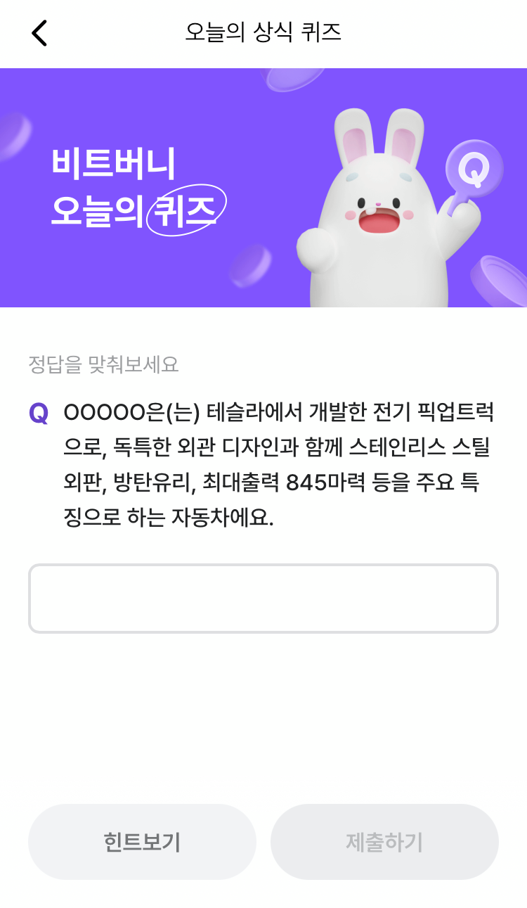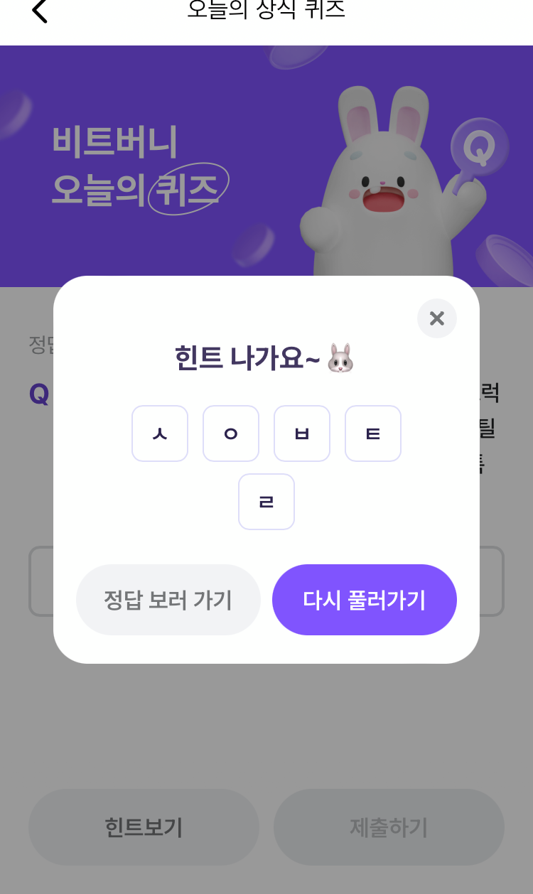 * 비트버니 퀴즈는 오늘의 퀴즈와 코인이 쌓이는 퀴즈가 있어요!!