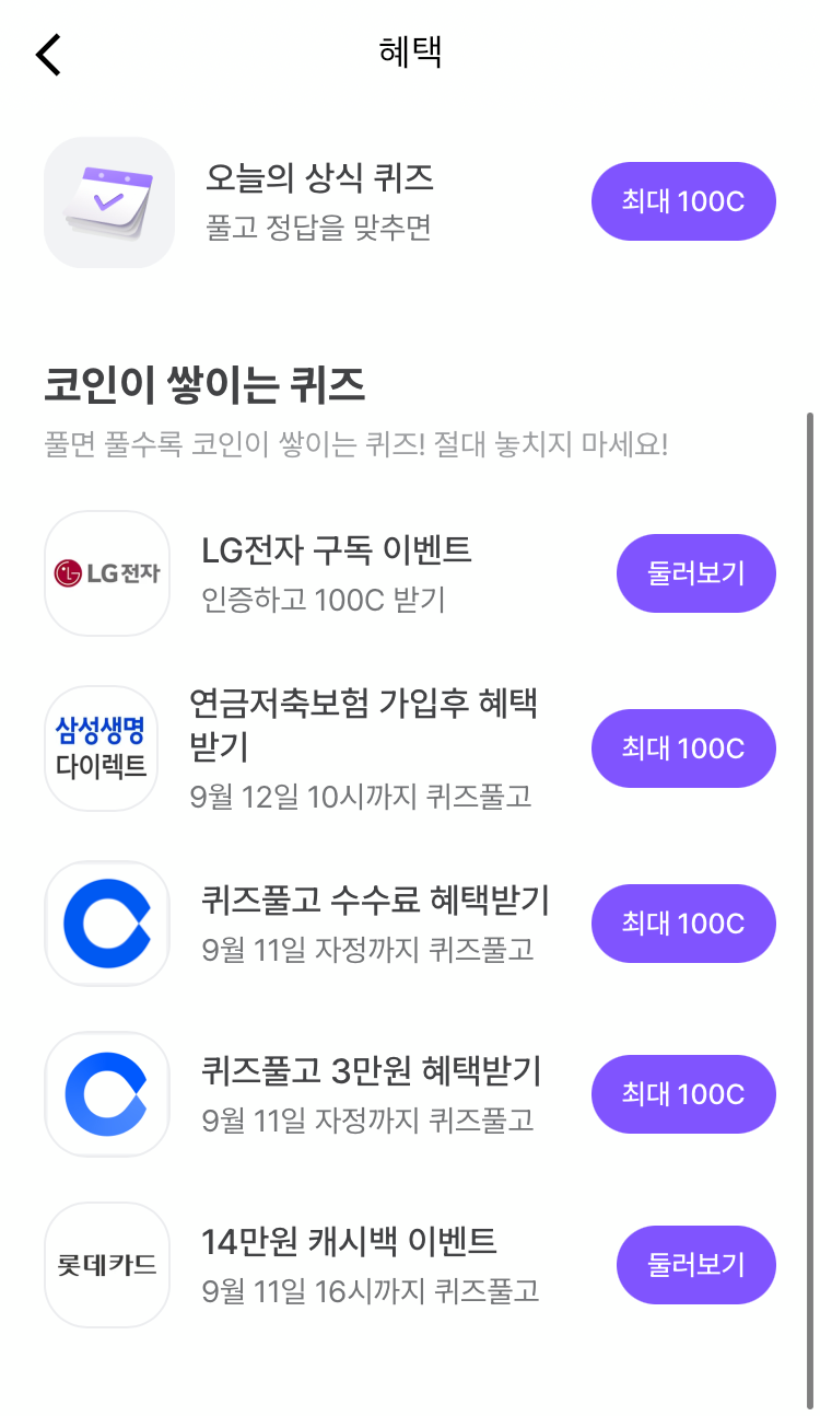 / 코인이 쌓이는 퀴즈도 풀어봐요~