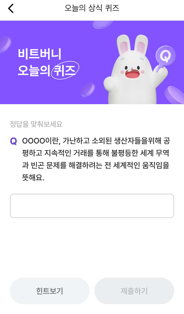 * 비트버니 퀴즈는 오늘의 퀴즈와 코인이 쌓이는 퀴즈가 있어요!!
