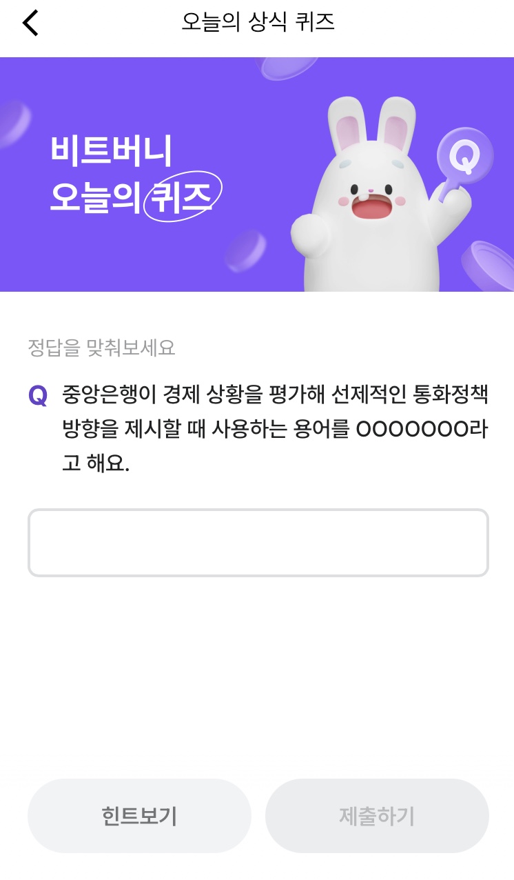 * 비트버니 퀴즈는 오늘의 퀴즈와 코인이 쌓이는 퀴즈가 있어요!!