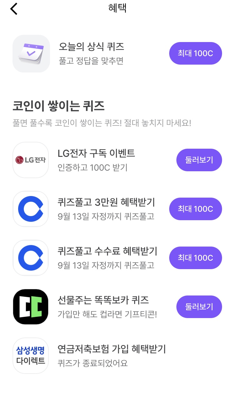 / 코인이 쌓이는 퀴즈도 풀어봐요~