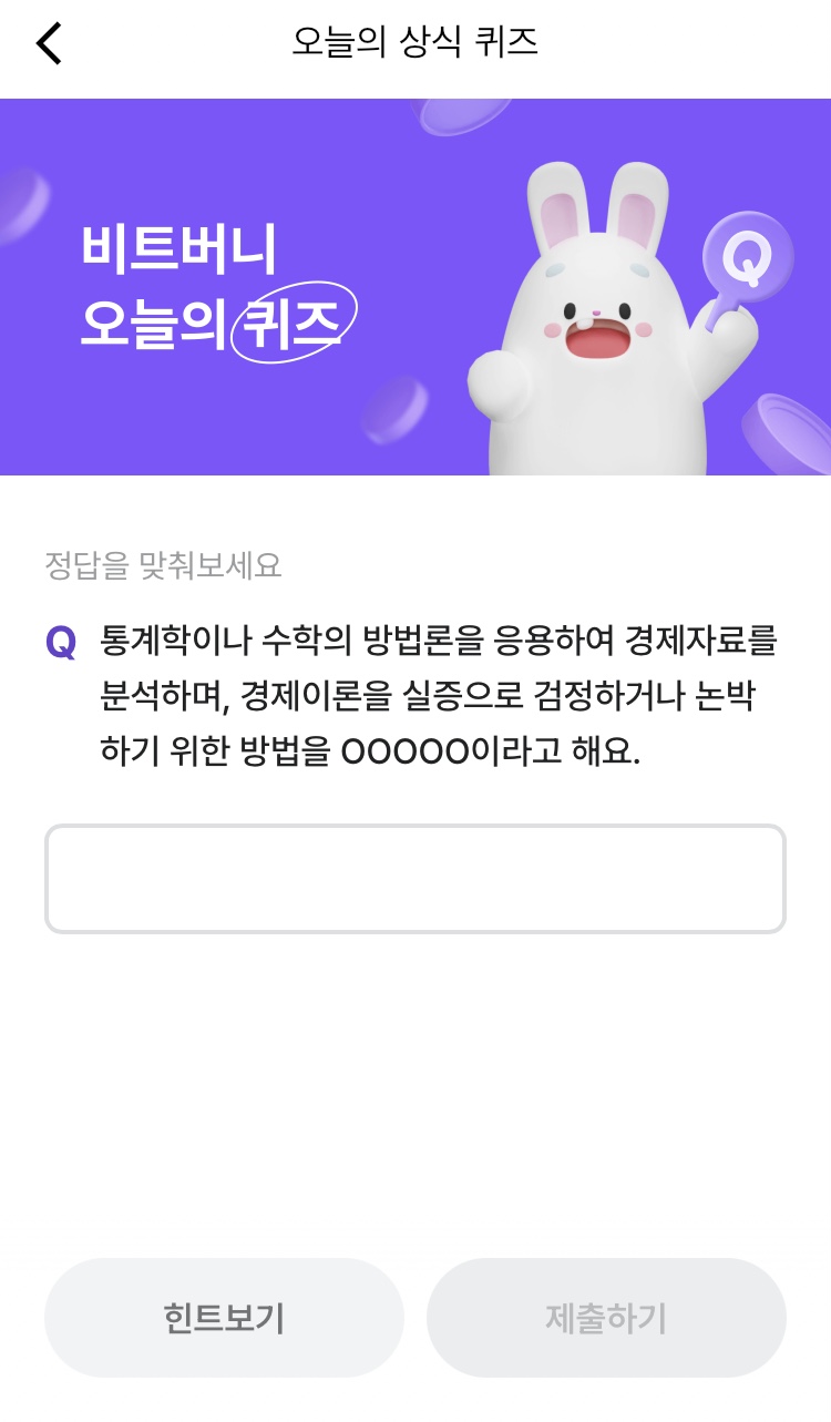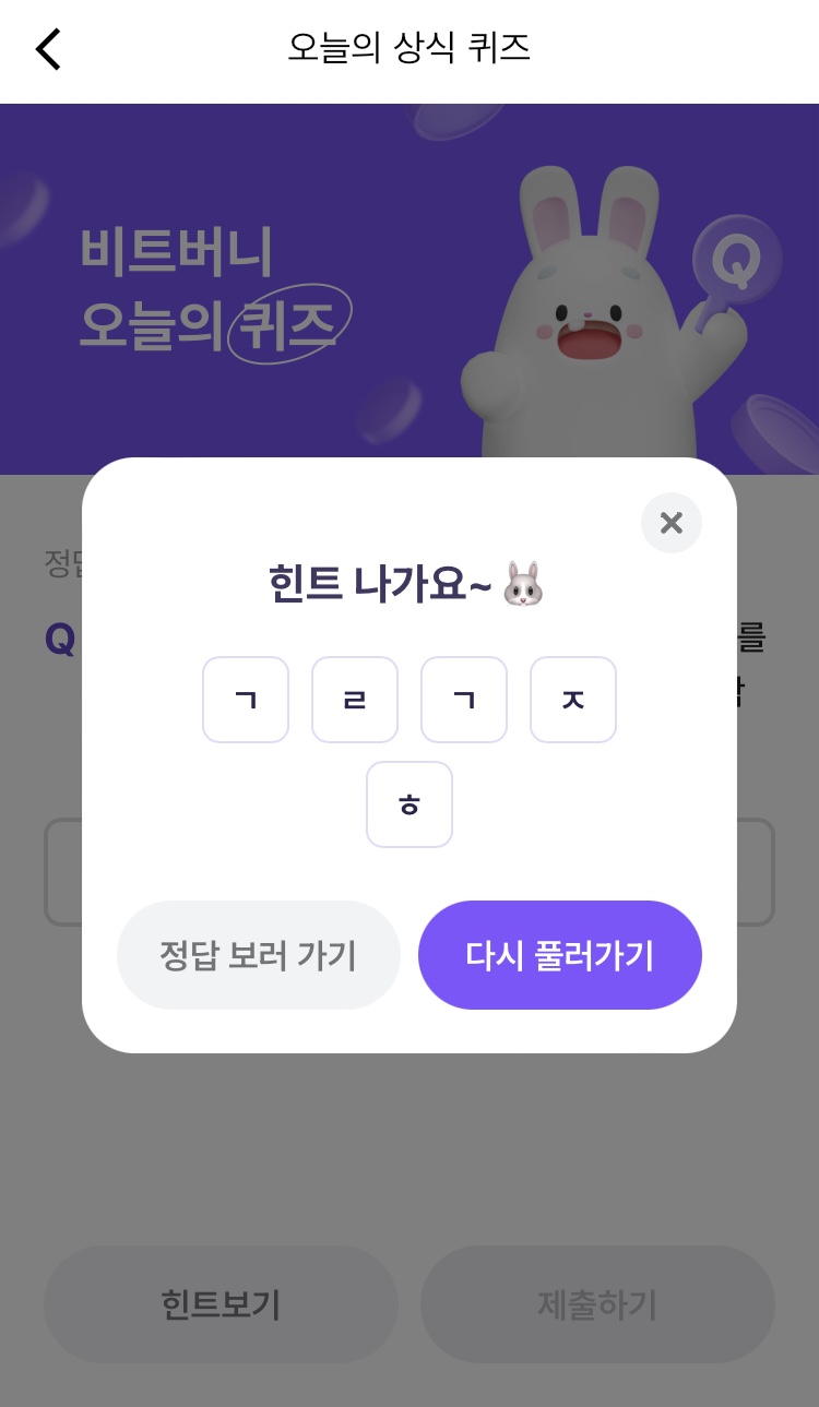 * 비트버니 퀴즈는 오늘의 퀴즈와 코인이 쌓이는 퀴즈가 있어요!!