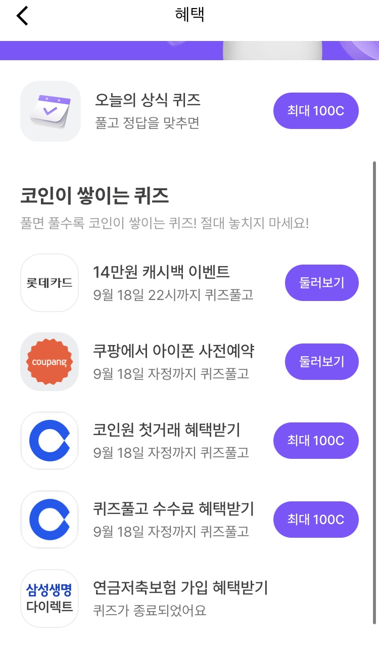 / 코인이 쌓이는 퀴즈도 풀어봐요~