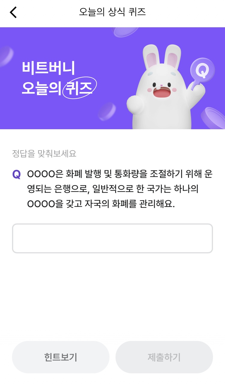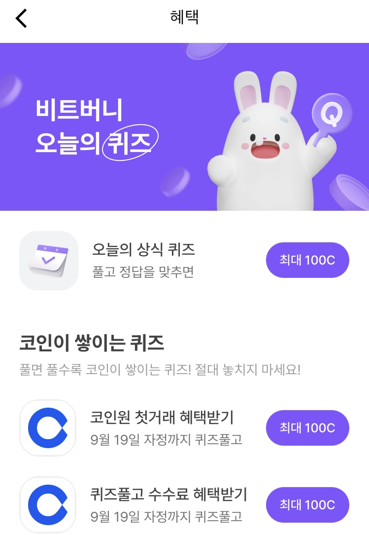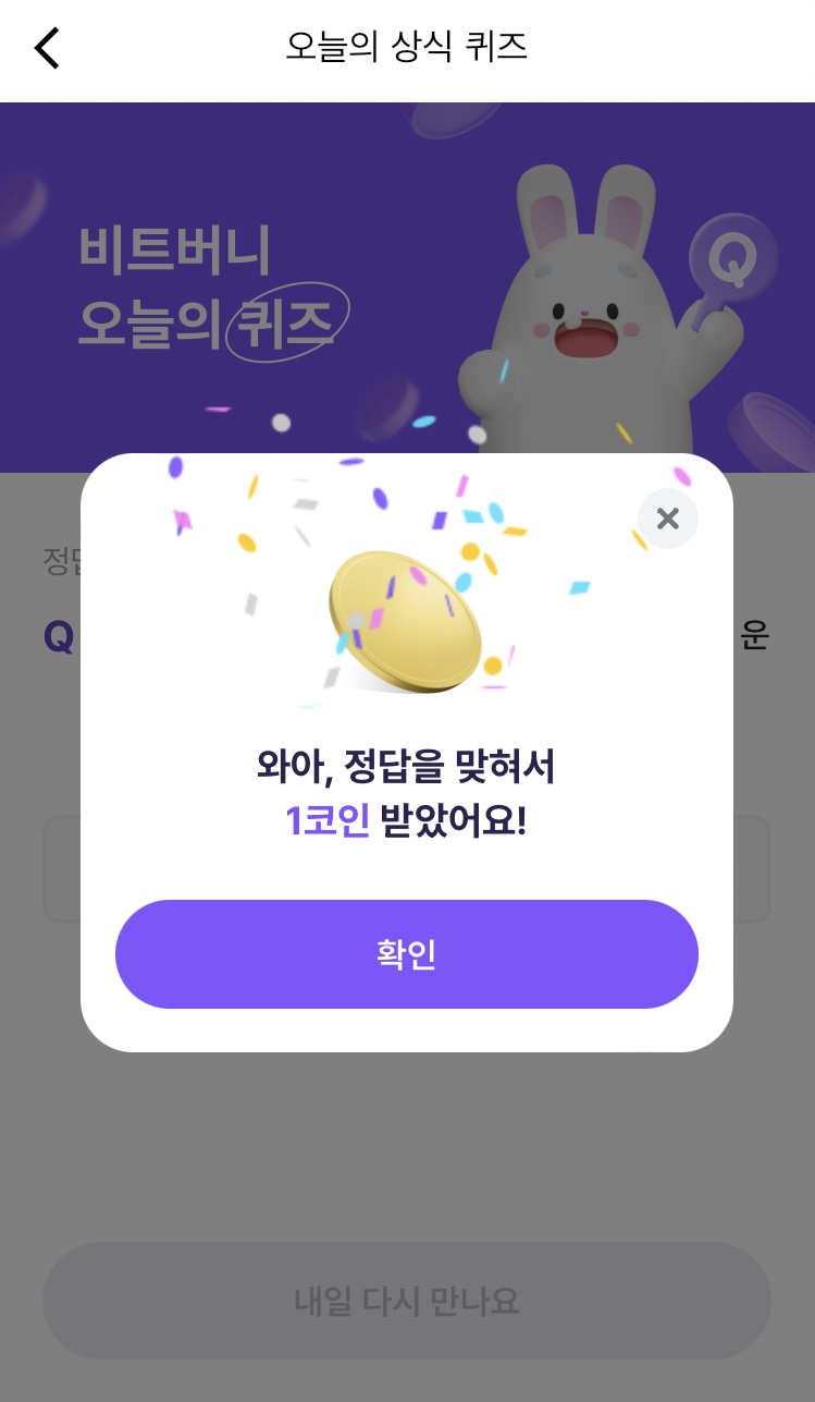 * 비트버니 퀴즈는 오늘의 퀴즈와 코인이 쌓이는 퀴즈가 있어요!!