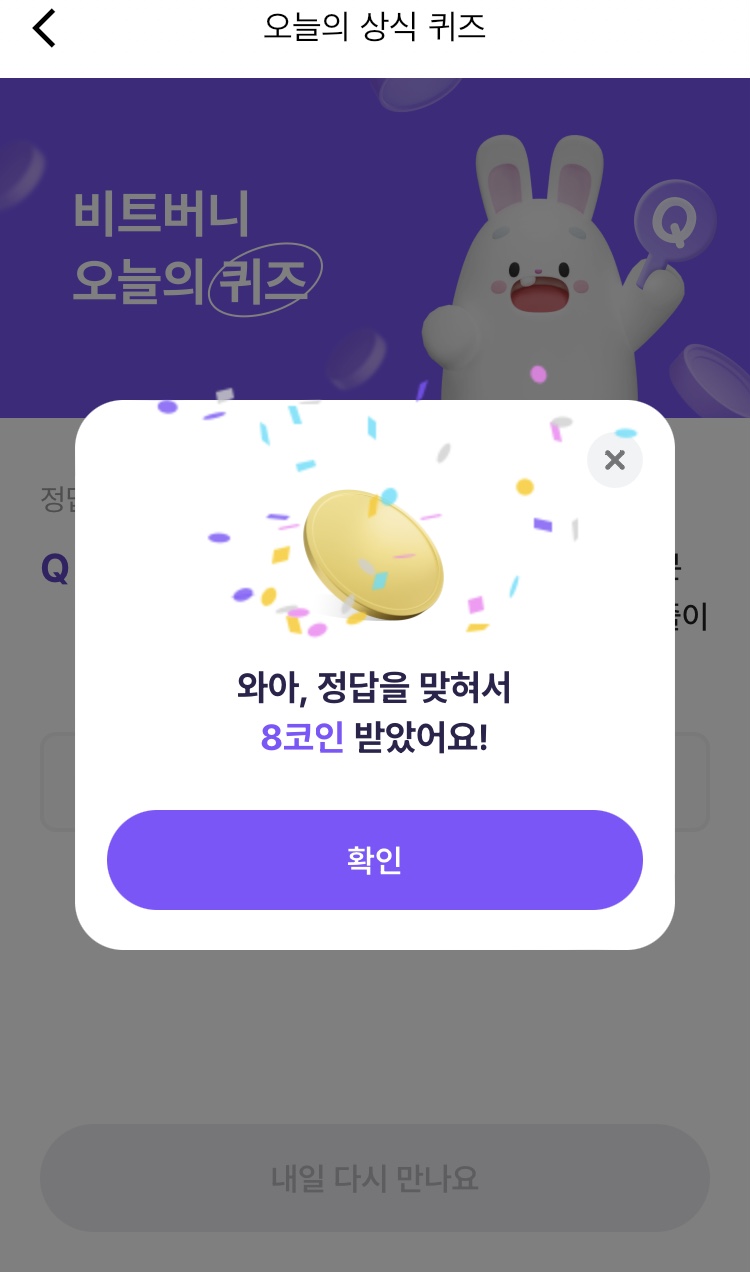 * 비트버니 퀴즈는 오늘의 퀴즈코인이 쌓이는 퀴즈가 있어요!!