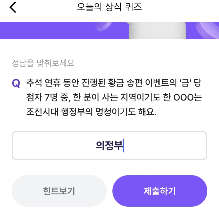 비트버니 9월 29일 오늘의 퀴즈 정답 ㅅㅇㅍㄱㄷ 은?(ft. 삼성생명,K뱅크) (0) | 2024.09.29 |