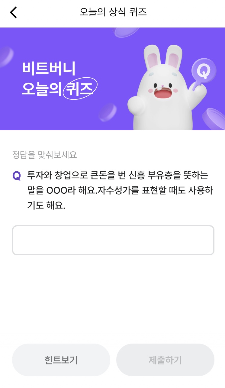 * 비트버니 퀴즈는 오늘의 퀴즈와 코인이 쌓이는 퀴즈가 있어요!!