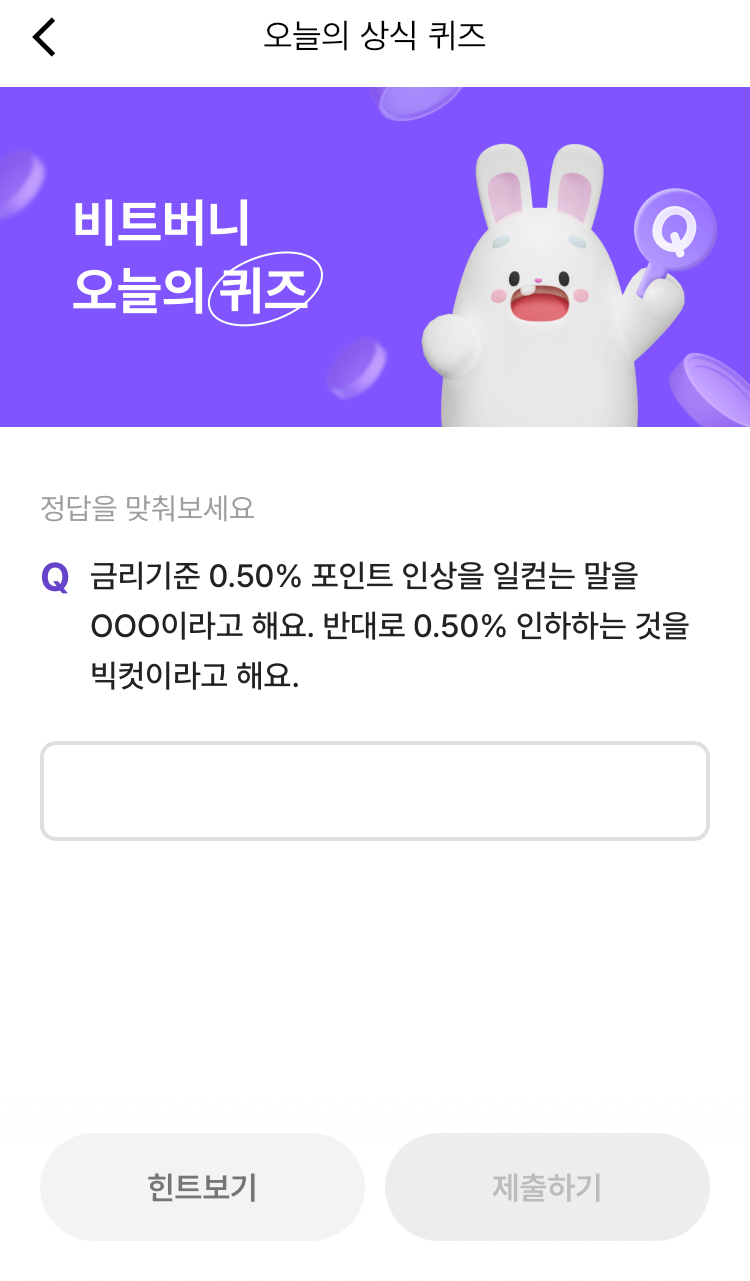 * 비트버니 퀴즈는 오늘의 퀴즈와 코인이 쌓이는 퀴즈가 있어요!!