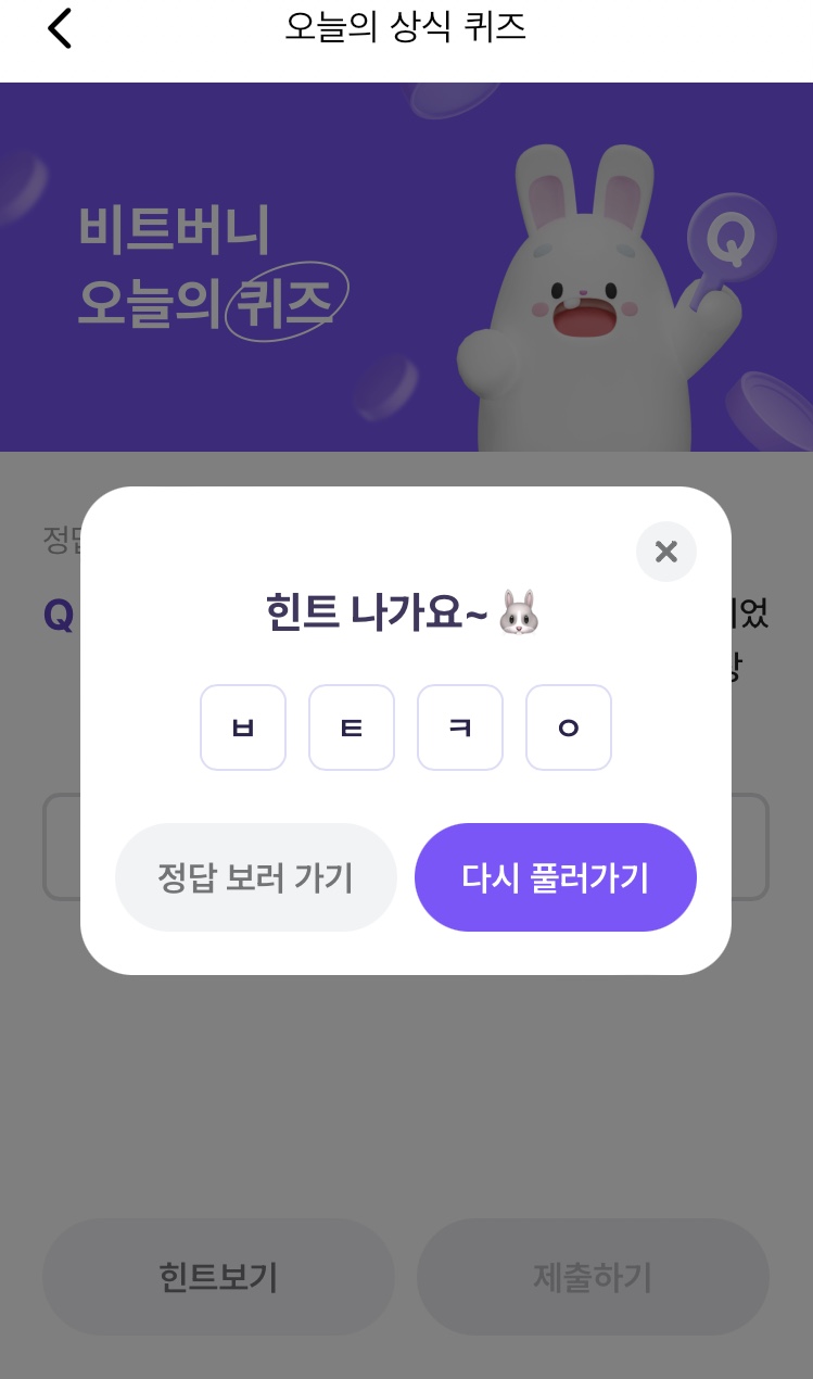 * 비트버니 퀴즈는 오늘의 퀴즈코인이 쌓이는 퀴즈가 있어요!!
