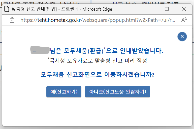다행히 환급금액이 있어 까먹지 않고 기간 안에 신고를 해야지 하고 며칠이 지났는데