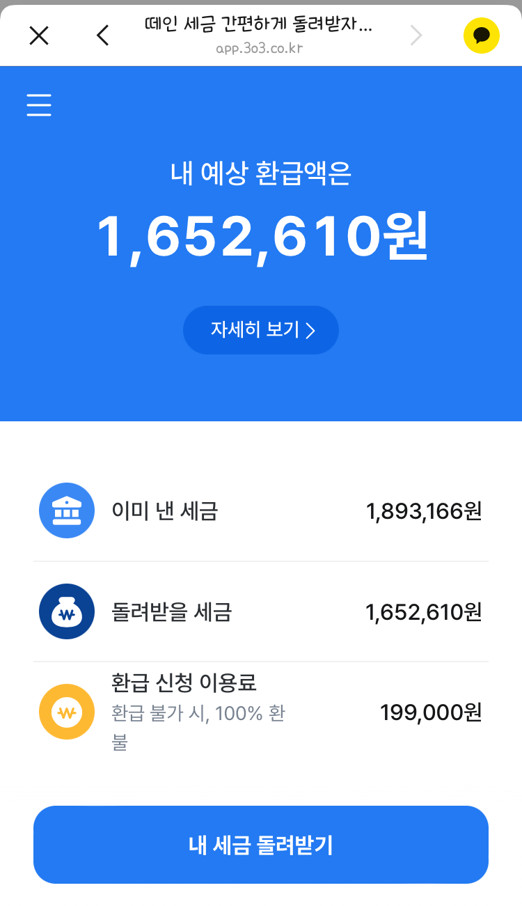 마지막 환급세액을 삼쩜삼과 비교해보면 된다.